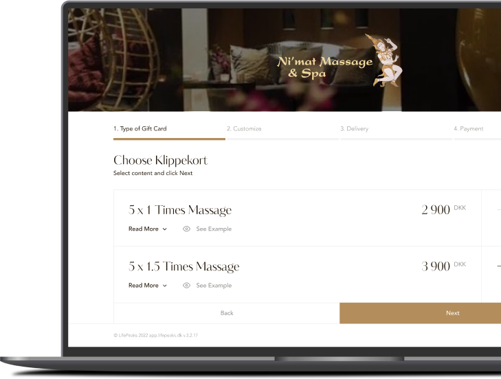 Ligesom alle andre services fra Life Peaks, har I komplet valgfrihed om hvordan opsætningen af jeres klippekort skal tilpasses.